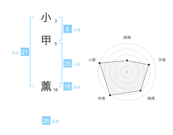 小甲 薰さんの外格は21画の5点!