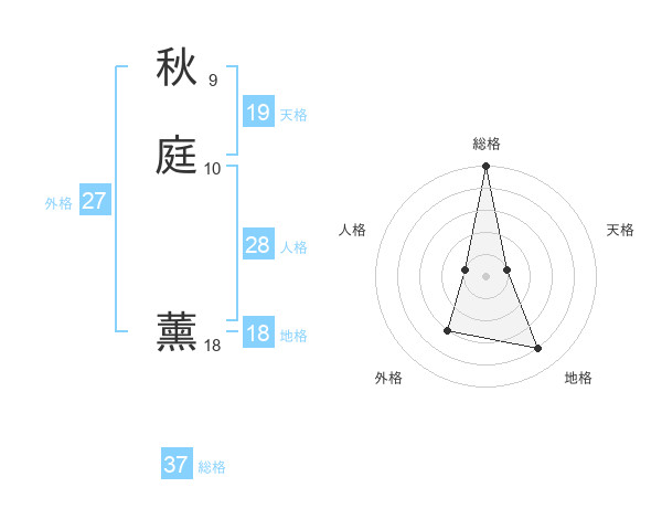 秋庭 薰さんの総格は37画の5点!