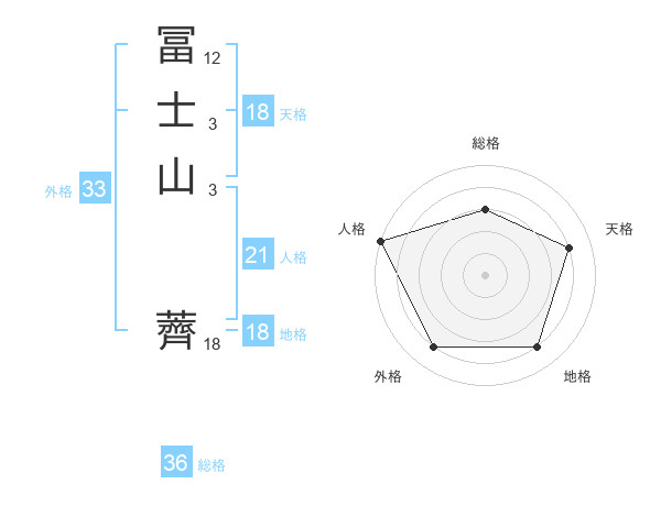 冨士山 薺さんを姓名の画数から五運を鑑定