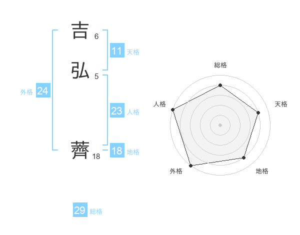 吉弘 薺さんの総格は29画の4点!