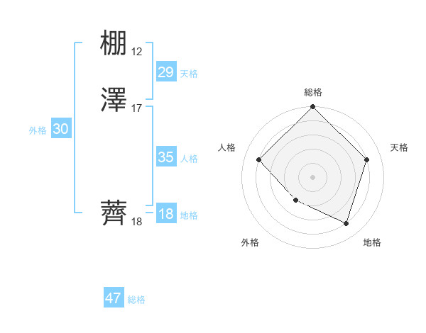 棚澤 薺さんの総格は47画の5点!