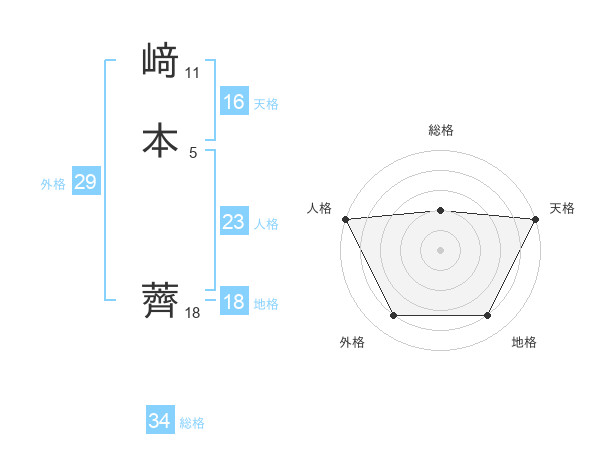 﨑本 薺さんを姓名の画数から五運を鑑定