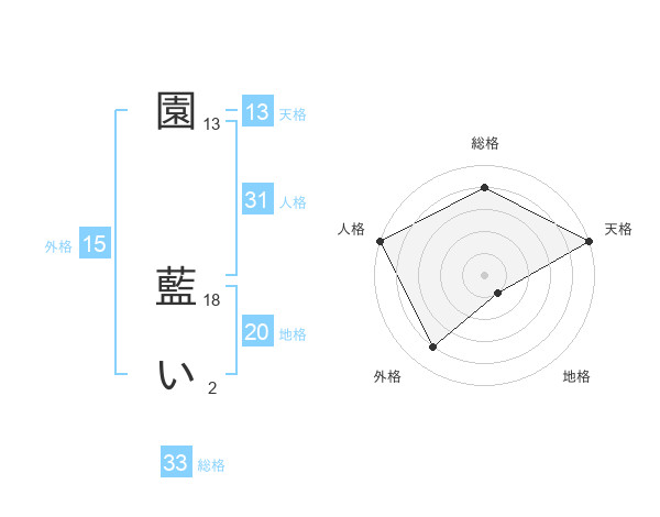 園 藍いさんの天格は13画の5点!