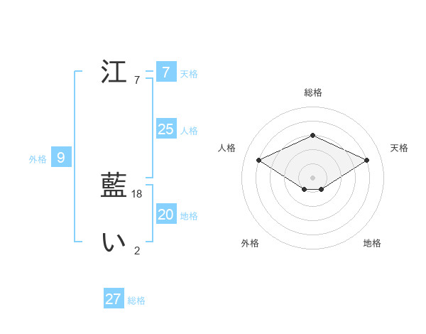 江 藍いさんの総格は27画の3点!