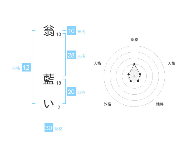 翁 藍いさんの総格は30画の2点!