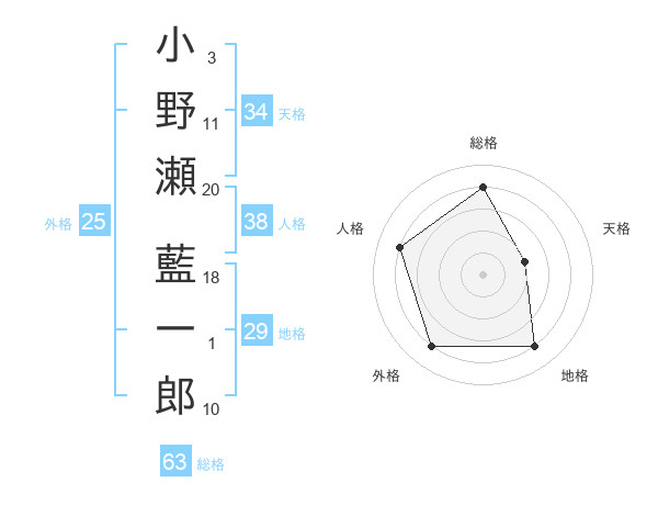 小野瀬 藍一郎さんの総格は63画の4点