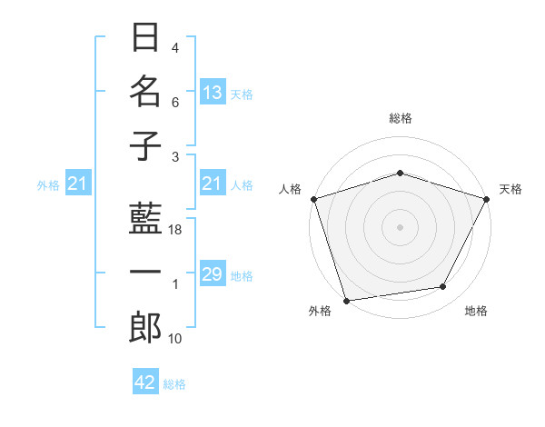 日名子 藍一郎さんを姓名の画数から五運を鑑定