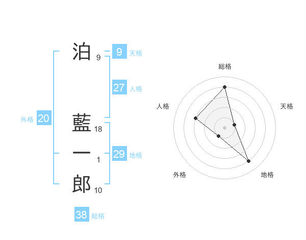 泊 藍一郎さんを姓名の画数から五運を鑑定