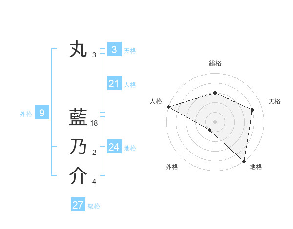 丸 藍乃介さんの総格は27画の3点!