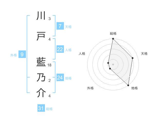 川戸 藍乃介さんを姓名の画数から五運を鑑定