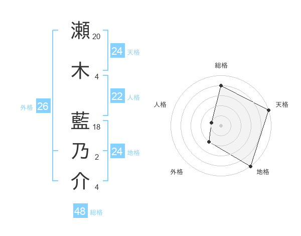瀬木 藍乃介さんの総格は48画の4点!