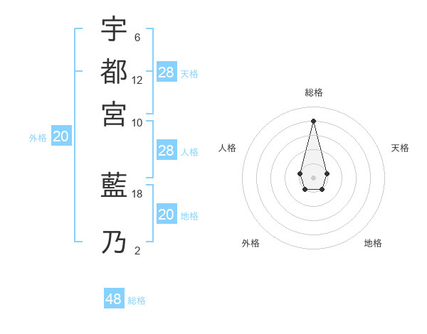 宇都宮 藍乃さんを姓名の画数から五運を鑑定