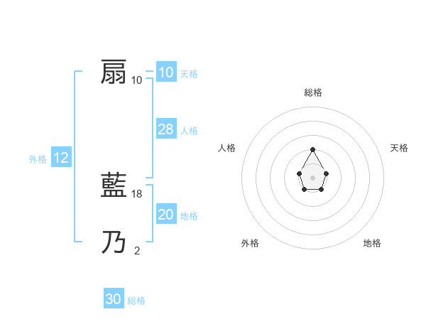 扇 藍乃さんの総格は30画の2点