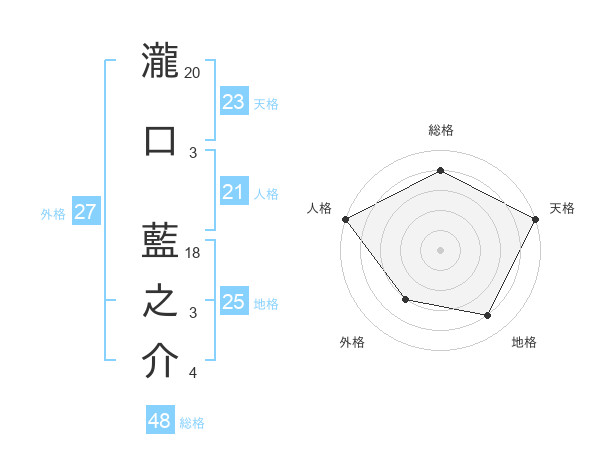 瀧口 藍之介さんを姓名の画数から五運を鑑定