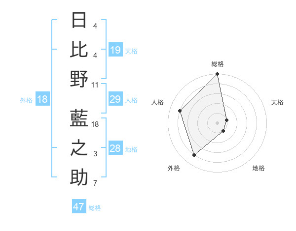 日比野 藍之助さんの総格は47画の5点!