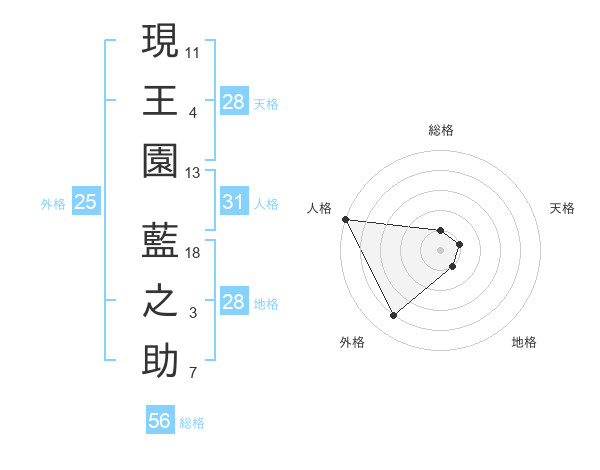 現王園 藍之助さんを姓名の画数から五運を鑑定
