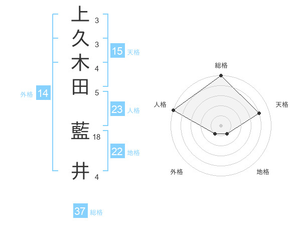 上久木田 藍井さんを姓名の画数から五運を鑑定