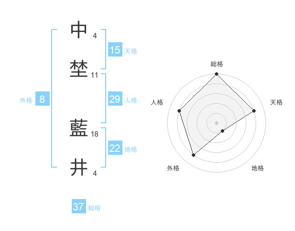 中埜 藍井さんの総格は37画の5点!