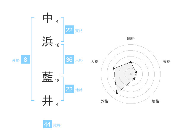 中浜 藍井さんを姓名の画数から五運を鑑定