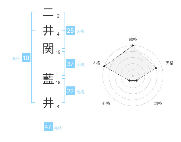 二井関 藍井さんを姓名の画数から五運を鑑定