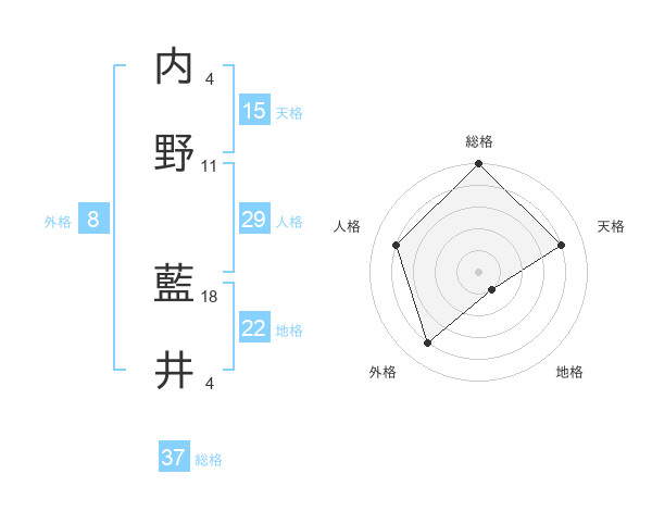 内野 藍井さんの総格は37画の5点!