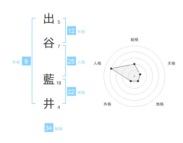 出谷 藍井さんの総格は34画の2点!