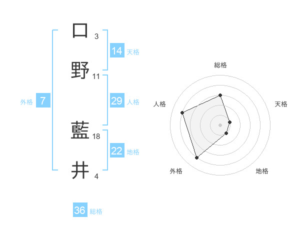 口野 藍井さんの総格は36画の3点!