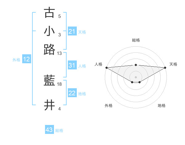 古小路 藍井さんを姓名の画数から五運を鑑定