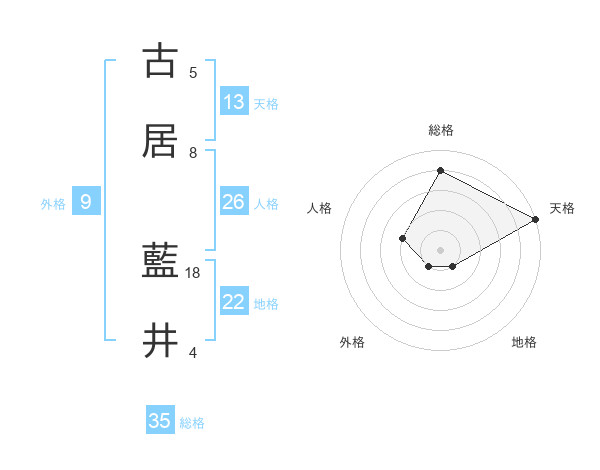 古居 藍井さんの天格は13画の5点!