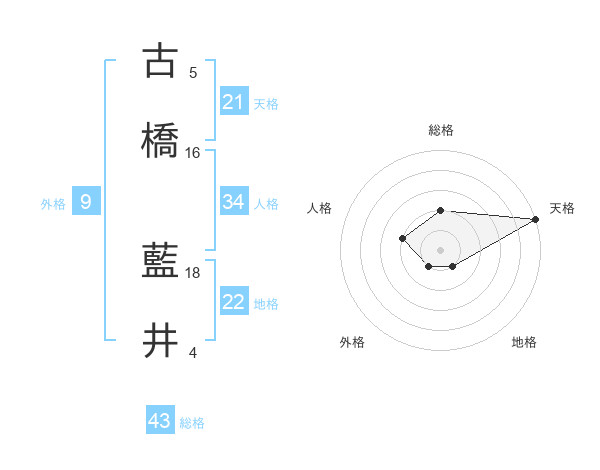 古橋 藍井さんを姓名の画数から五運を鑑定