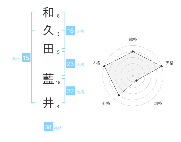 和久田 藍井さんを姓名の画数から五運を鑑定