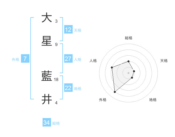 大星 藍井さんの総格は34画の2点!
