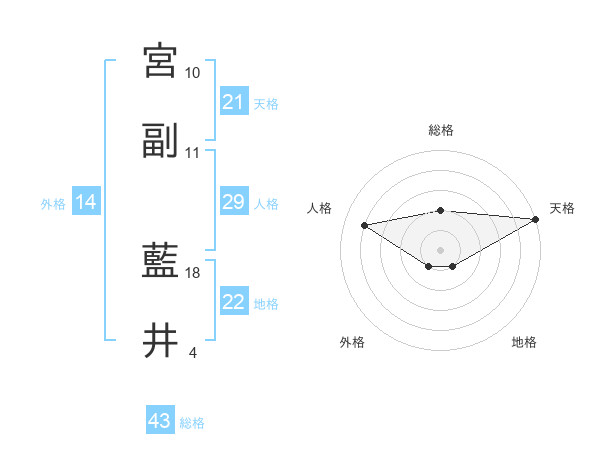 宮副 藍井さんの天格は21画の5点!