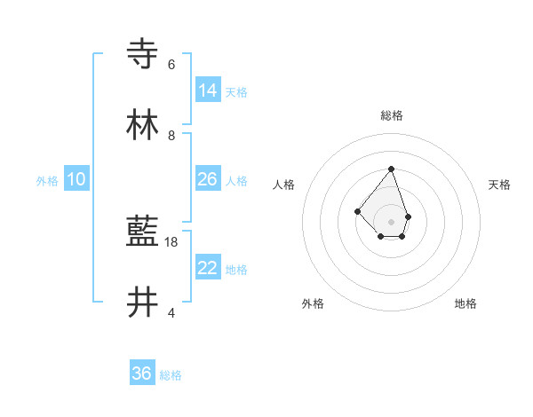 寺林 藍井さんの総格は36画の3点!