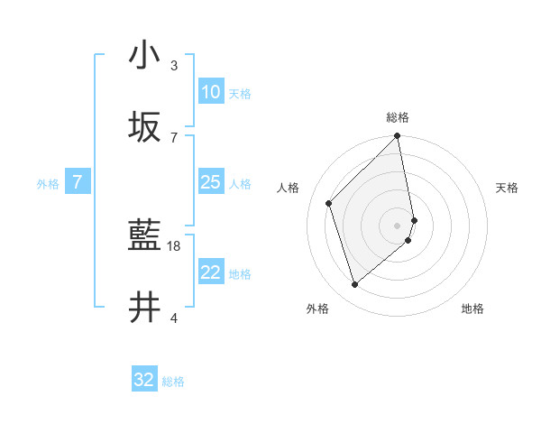 小坂 藍井さんを姓名の画数から五運を鑑定