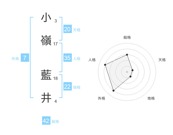 小嶺 藍井さんを姓名の画数から五運を鑑定