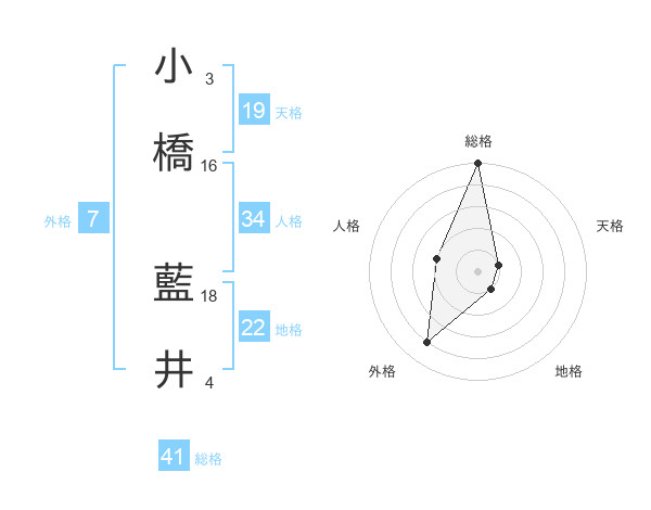小橋 藍井さんを姓名の画数から五運を鑑定