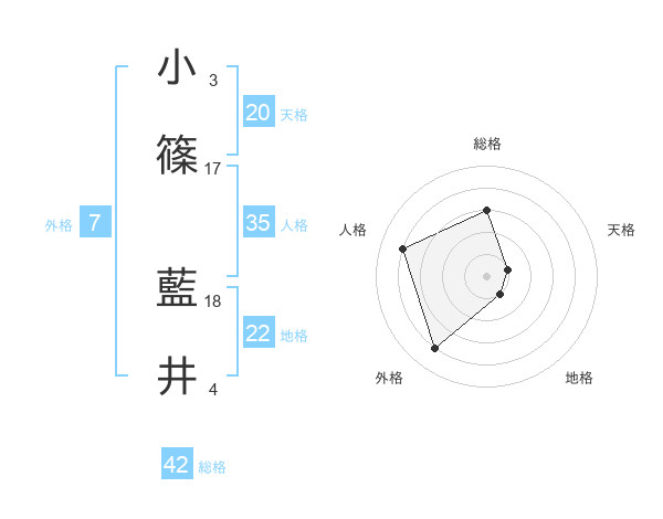 小篠 藍井さんを姓名の画数から五運を鑑定