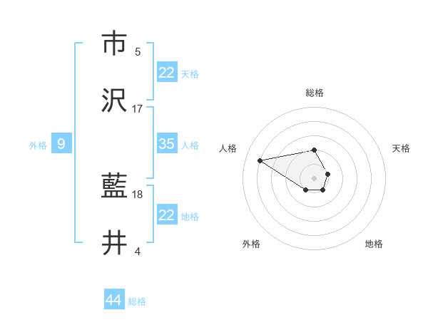 市沢 藍井さんの総格は44画の2点!