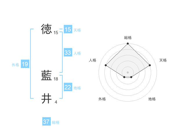 徳 藍井さんの総格は37画の5点!