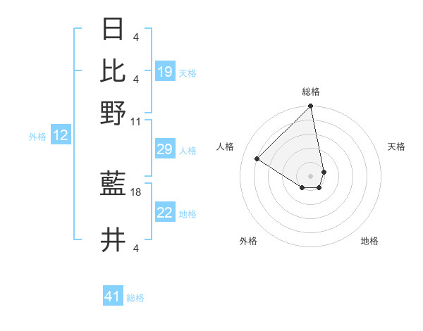 日比野 藍井さんの地格は22画の1点!