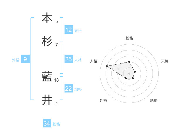 本杉 藍井さんを姓名の画数から五運を鑑定