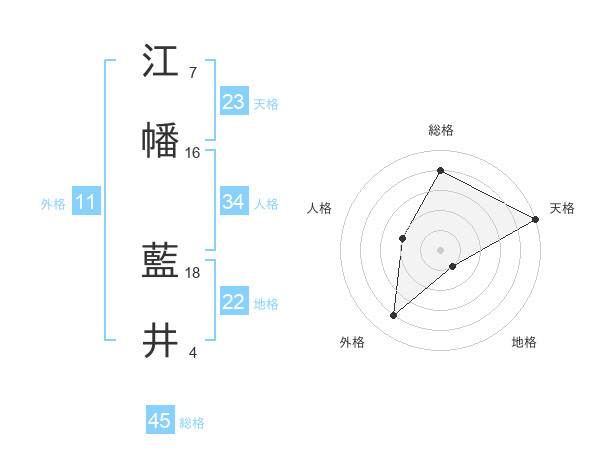 江幡 藍井さんの総格は45画の4点!