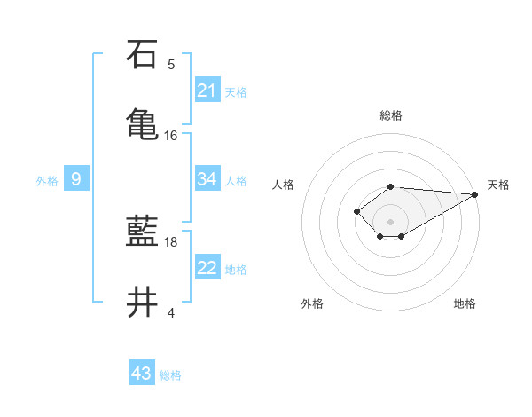 石亀 藍井さんの天格は21画の5点!