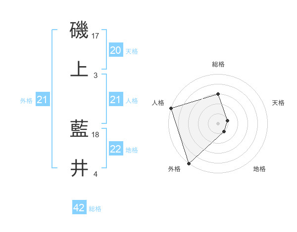 磯上 藍井さんの外格は21画の5点!
