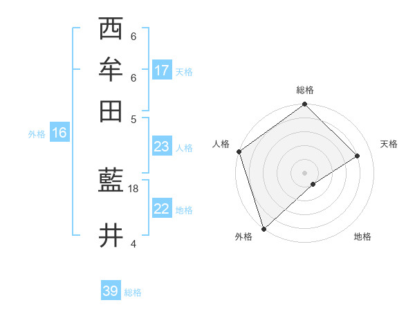 西牟田 藍井さんの天格は17画の4点!