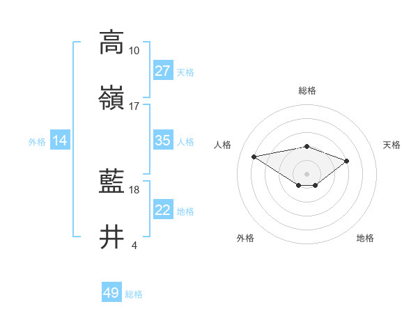 高嶺 藍井さんの総格は49画の2点!