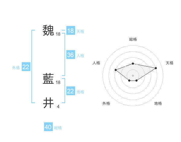 魏 藍井さんの天格は18画の4点!