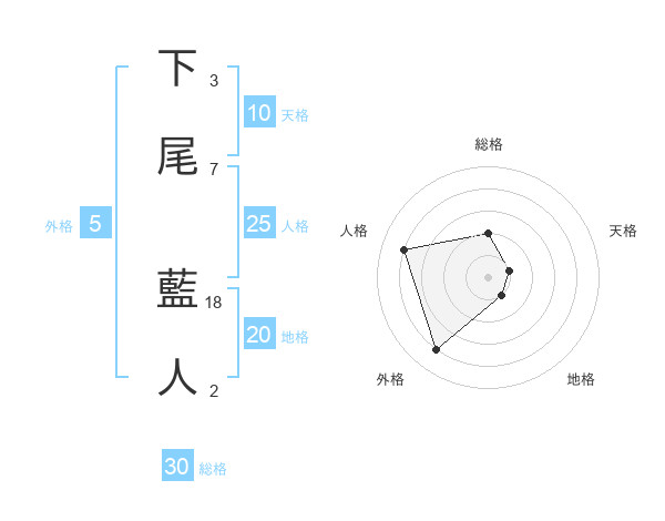 下尾 藍人さんを姓名の画数から五運を鑑定