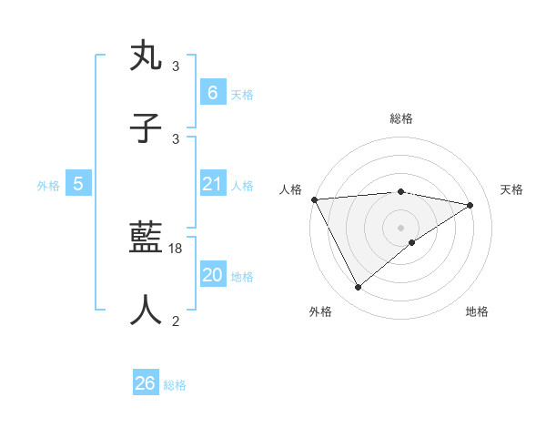 丸子 藍人さんの総格は26画の2点!
